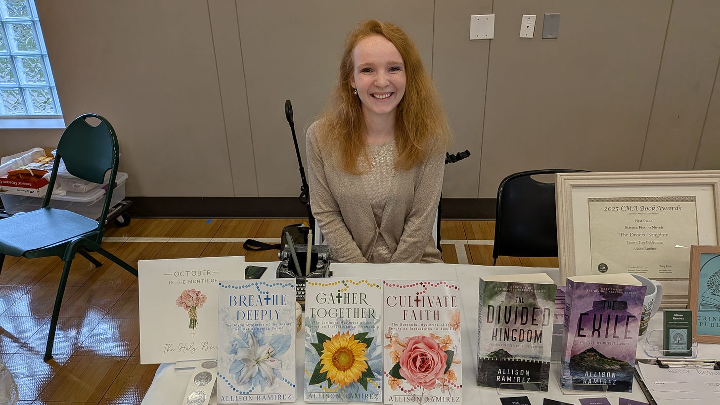 Yes, so I am thrilled to be publishing the final books in BOTH my book series this year. Blossom as Saints, a devotional on the Glorious Mysteries of the Rosary, is coming out on February 11! This will be the fourth and final book in the Rosary Invitations series, each book inviting readers into Mary’s garden, learning about a different theme relevant to each set of mysteries. The books are quick reads and very interactive, including short stories, journal prompts, discussion questions, prayers, meditations, reflections, activity suggestions, and more. The Return, the third and final book in The Divided Kingdom trilogy, is also set to come out later this year. This is a YA dystopian/sci-fi series with biblical Old Testament themes throughout.